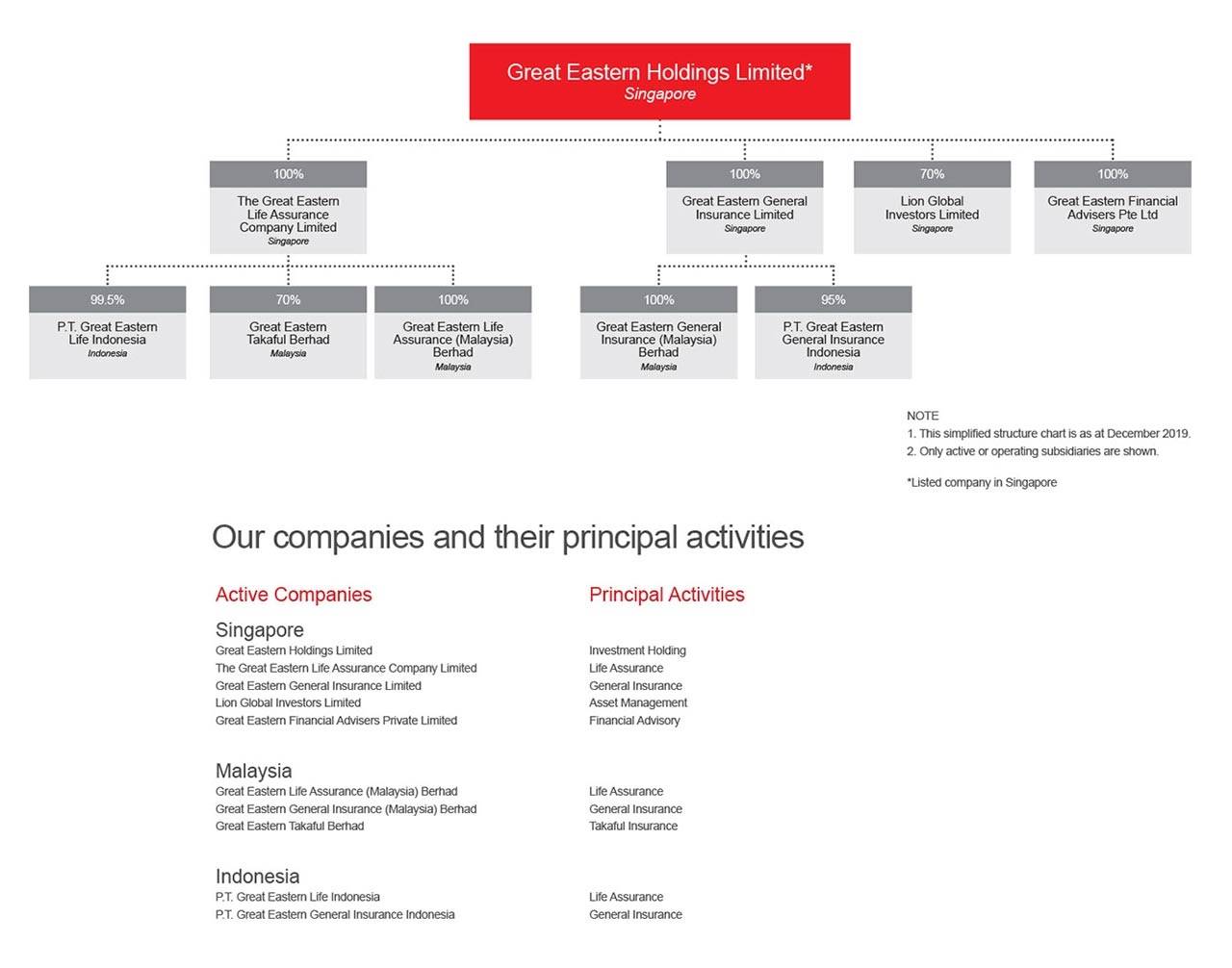 Great Eastern has a number of subsidiaries that represent its expertise in life assurance, general insurance, investment, and asset management.