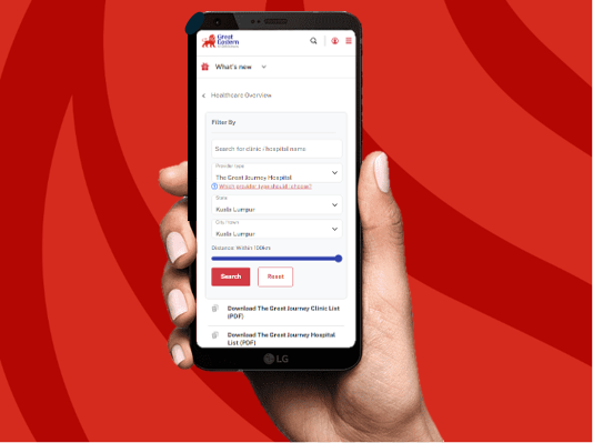 Policyholders can search for the nearest The Great Journey Clinics using the Panel locator available on our corporate website.