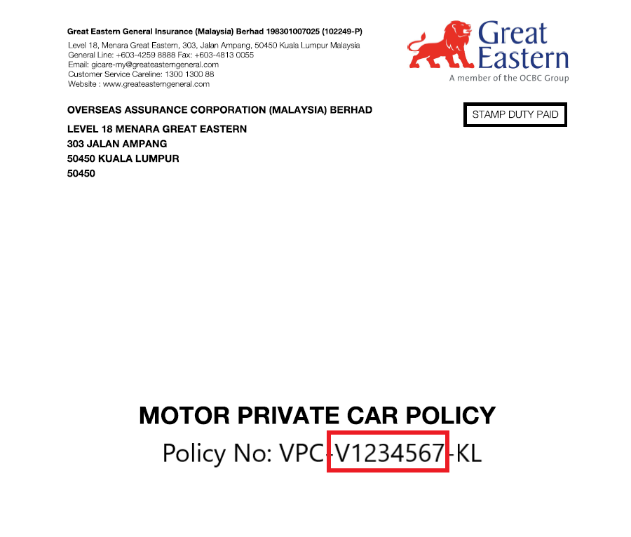 Policy numbers begin with G1, H1 or J3 followed by 6 digits.