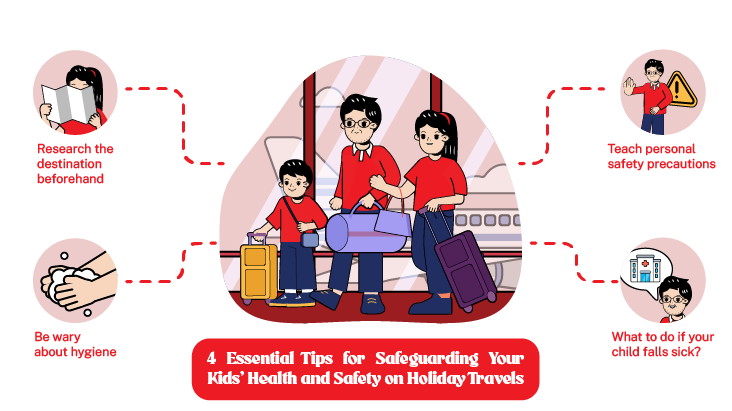 By taking certain precautions and following these essential tips, you can help safeguard your kids' health and safety during holiday travels. Remember to research your destination, teach personal safety precautions, maintain proper hygiene, and be prepared for potential health issues. Enhance your children's safety and create unforgettable memories with a reliable travel insurance plan from Great Eastern. Explore a comprehensive range of medical benefits, including emergency medical evacuation and repatriation. Safeguard your children's well-being and enjoy the moments together during your wonderful holiday trip. Subscribe to Great Eastern's Travel Insurance today and embark on a worry-free adventure of a lifetime.