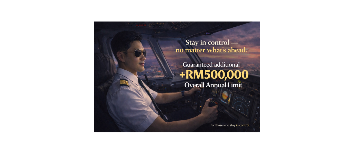 You now have the option to have an additional RM500,000 annual limit – guaranteed acceptance with no questions asked.