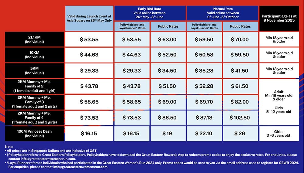 - On-site launch promotion rate is applicable to all registrants (including public, policyholders, and loyal runners) who purchase race slots on-site at the launch event on 26 May 2025.