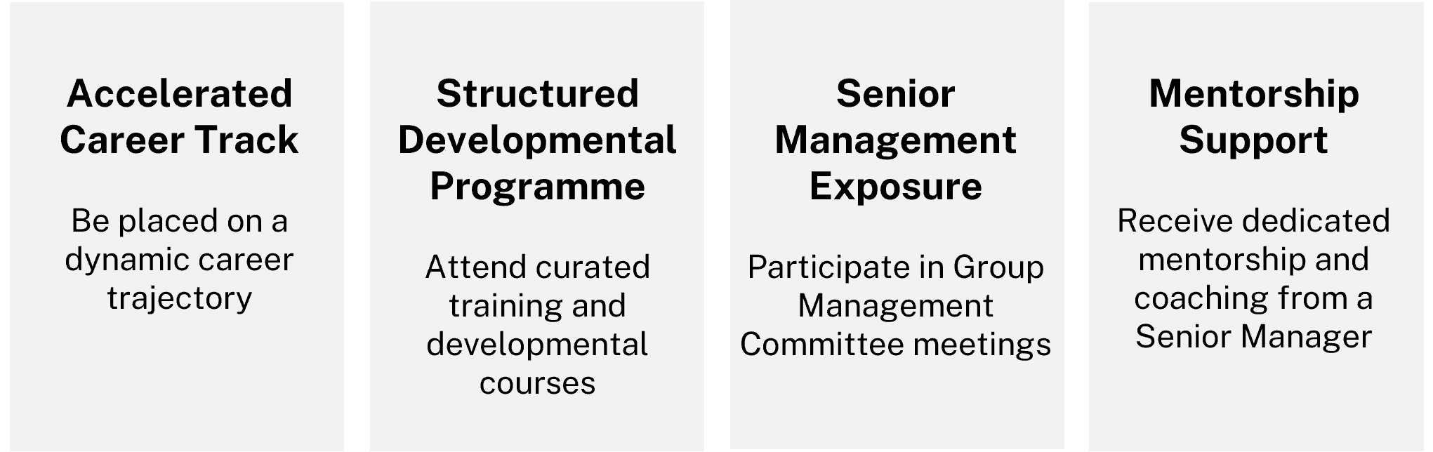 Specifically designed to develop future leaders in Great Eastern, you can look forward to hands-on job rotations and gain exposure to different aspects of the business in the financial and insurance industry.