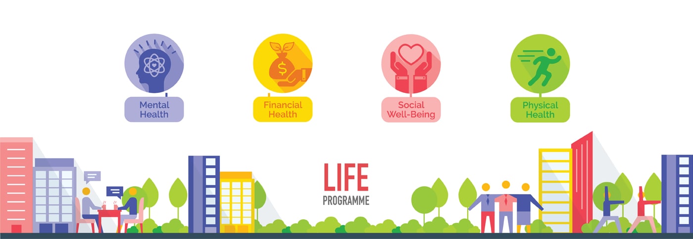 A programme birthed in 2013 and supporting Singapore Health Promotion Board's campaign that a healthier lifestyle begins at work, the LIFE programme was initiated to help employees understand and internalise what it meant to work in a LIFE Company - to Live #Lifeproof through a holistic health and wellness way of life.