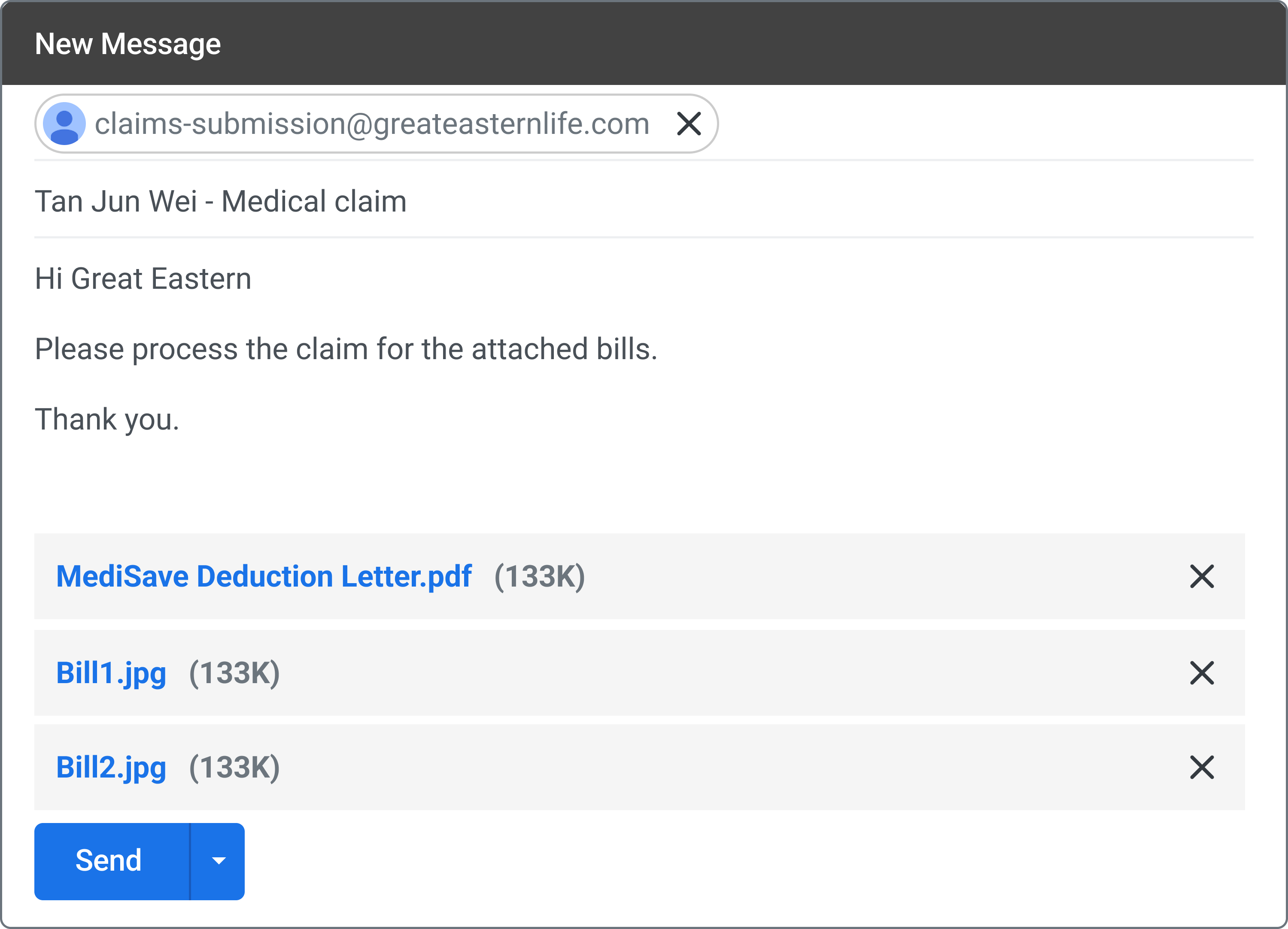After you receive an SMS from us that your main hospitalisation claim has been approved, you can begin to submit bills for pre and post hospitalisation expenses whenever you receive them.