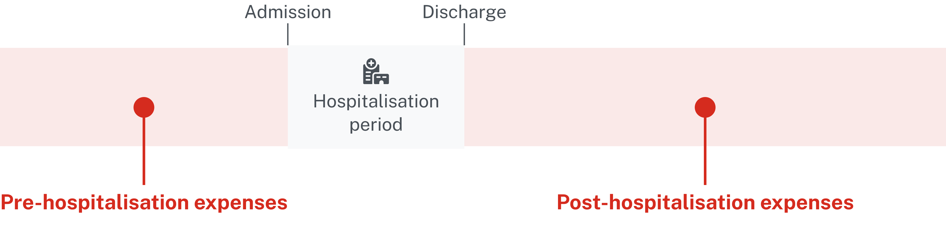 Pre or post hospitalisation claims are part of your coverage that reimburses you for related medical expenses incurred before and after a hospital stay within the eligible coverage period.