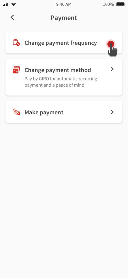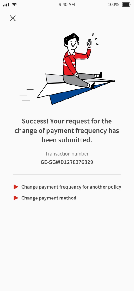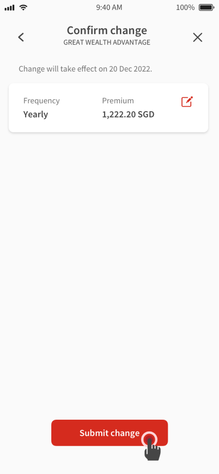 The effective date for your change may not be immediate. You can refer to the effective date in the request notification in the Great Eastern App. In the meantime, please continue to pay your premium on the stated due date.