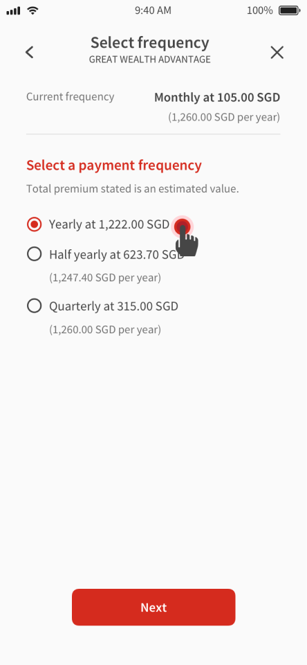 Your policy might not support all payment frequencies. Refer to your policy illustration document for more details.