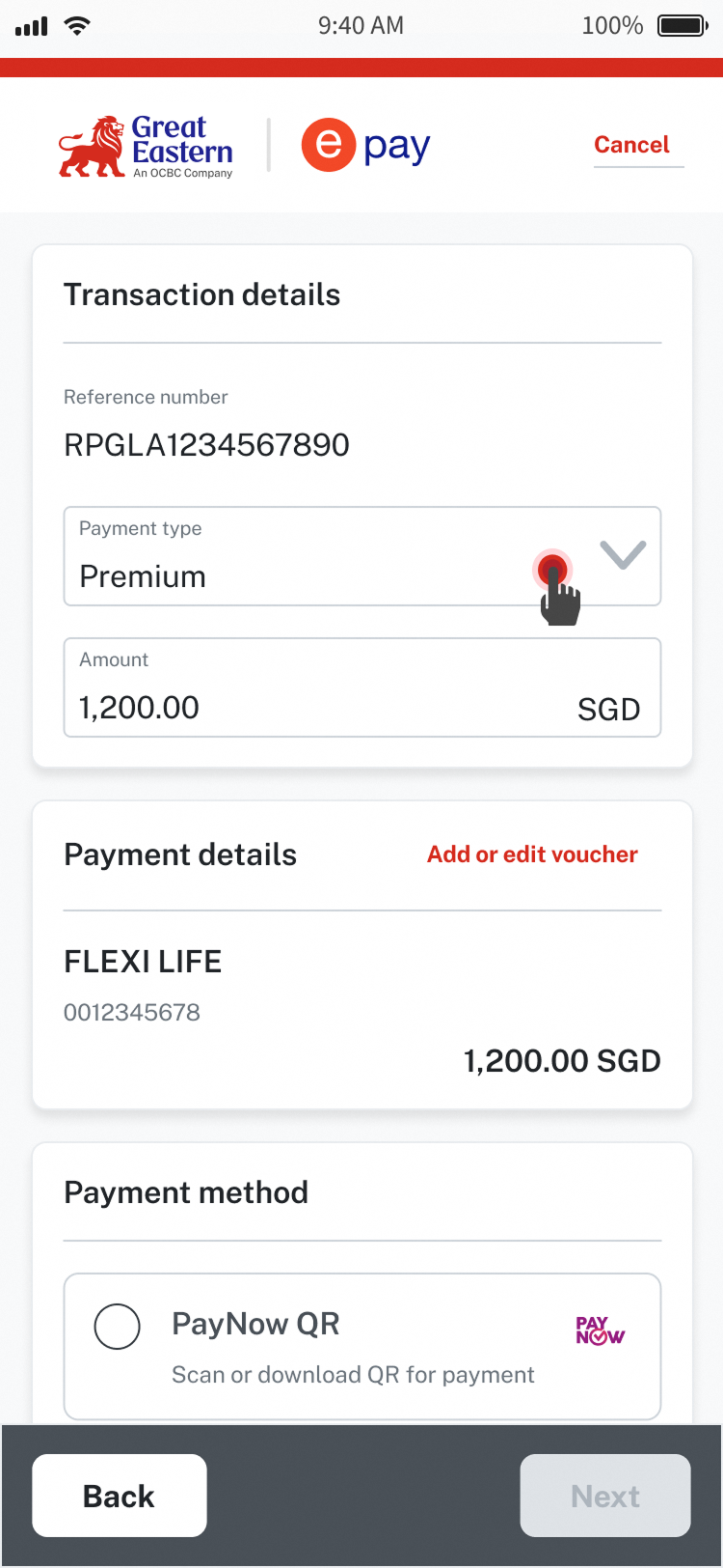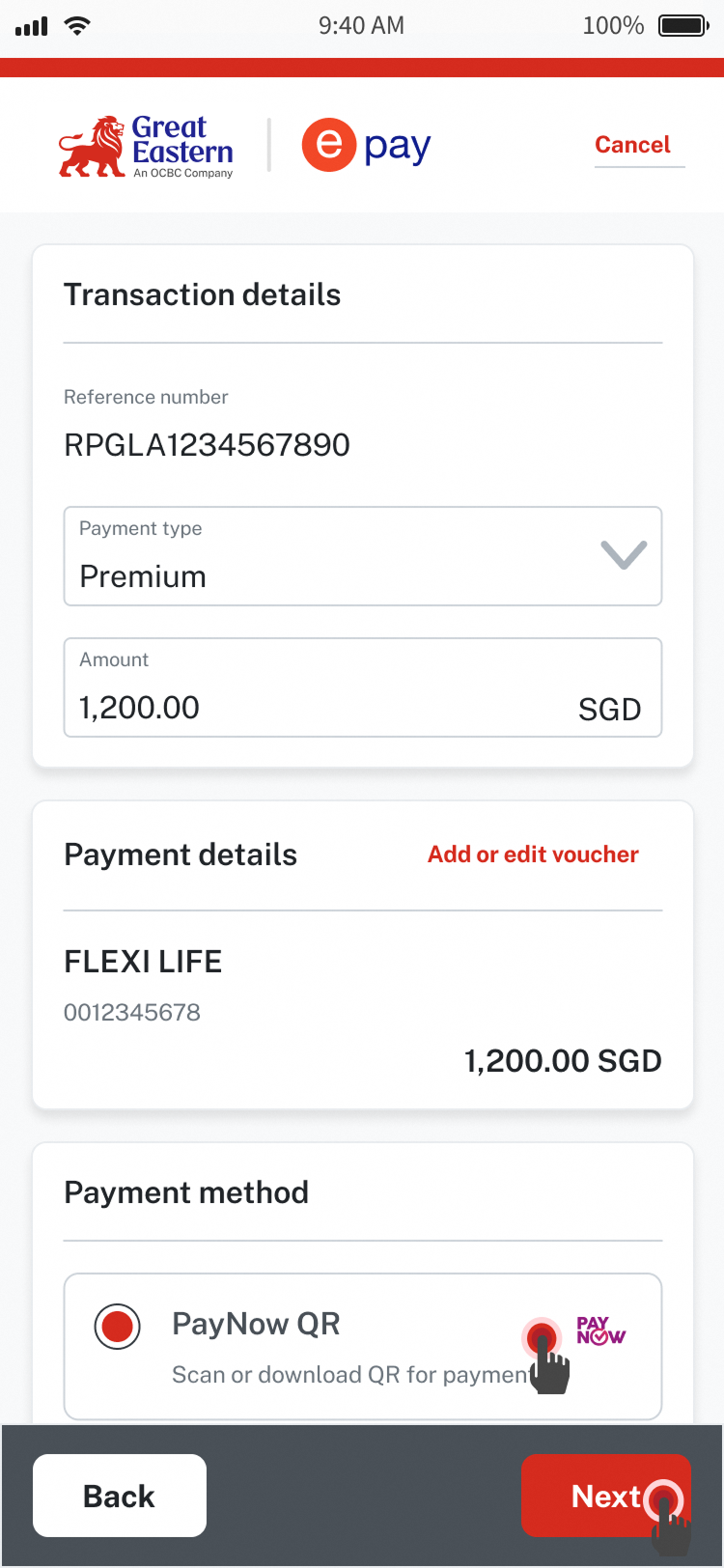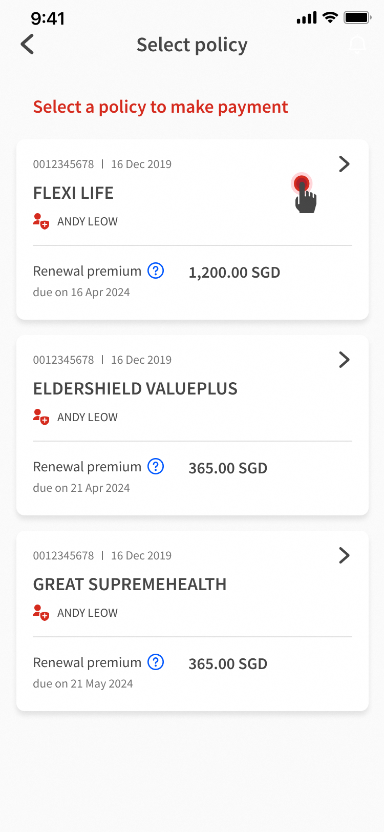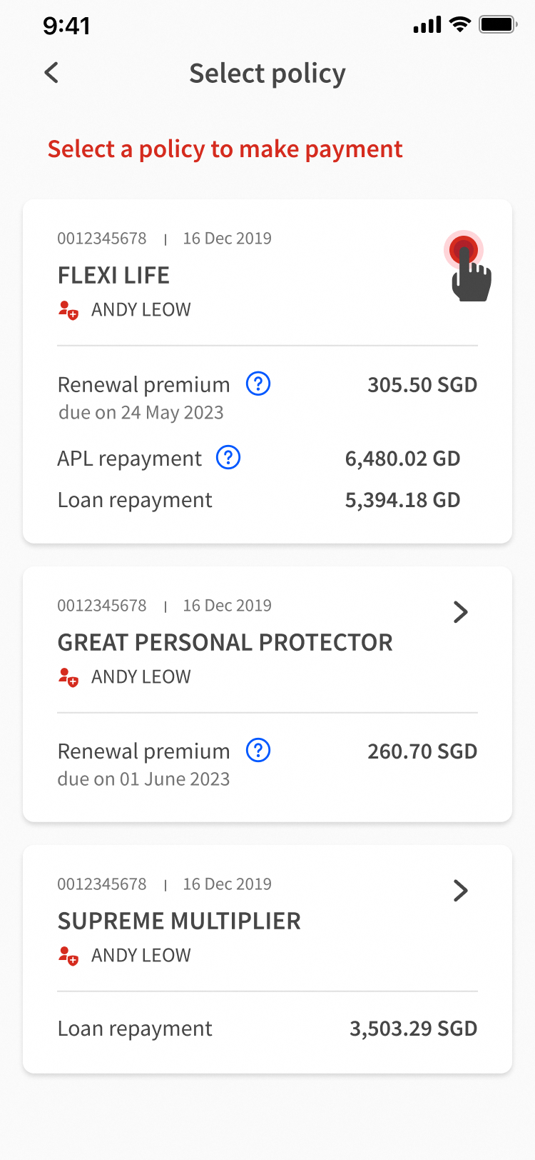 - PayNow QR is only available for 10-digit SGD policies. Not applicable for Dependants' Protection Scheme policies.