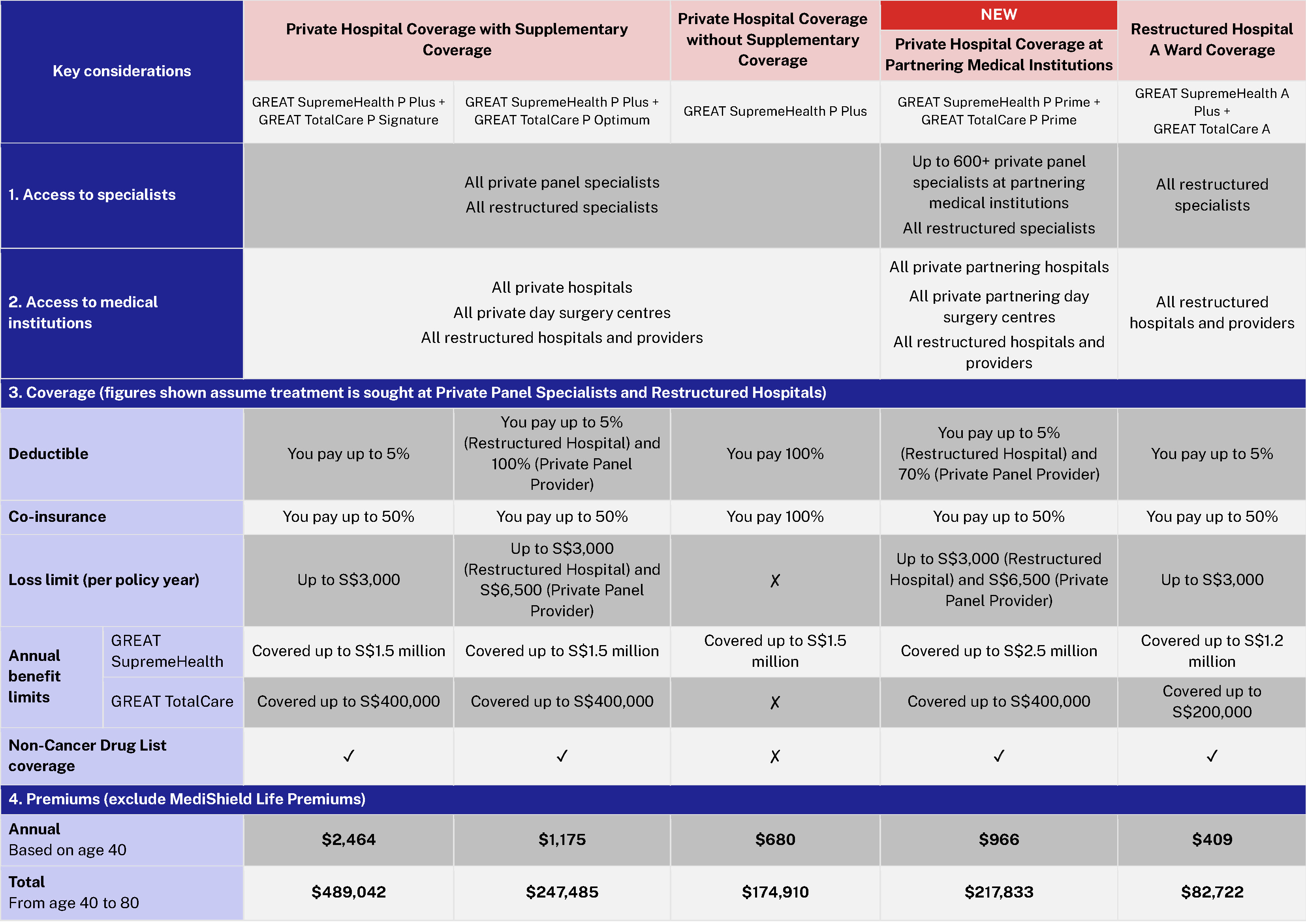 - Premiums are based on new and renewing GREAT SupremeHealth (GSH) and GTC policies from 1 November 2025. For more details, refer to the benefit schedule and premium rates.