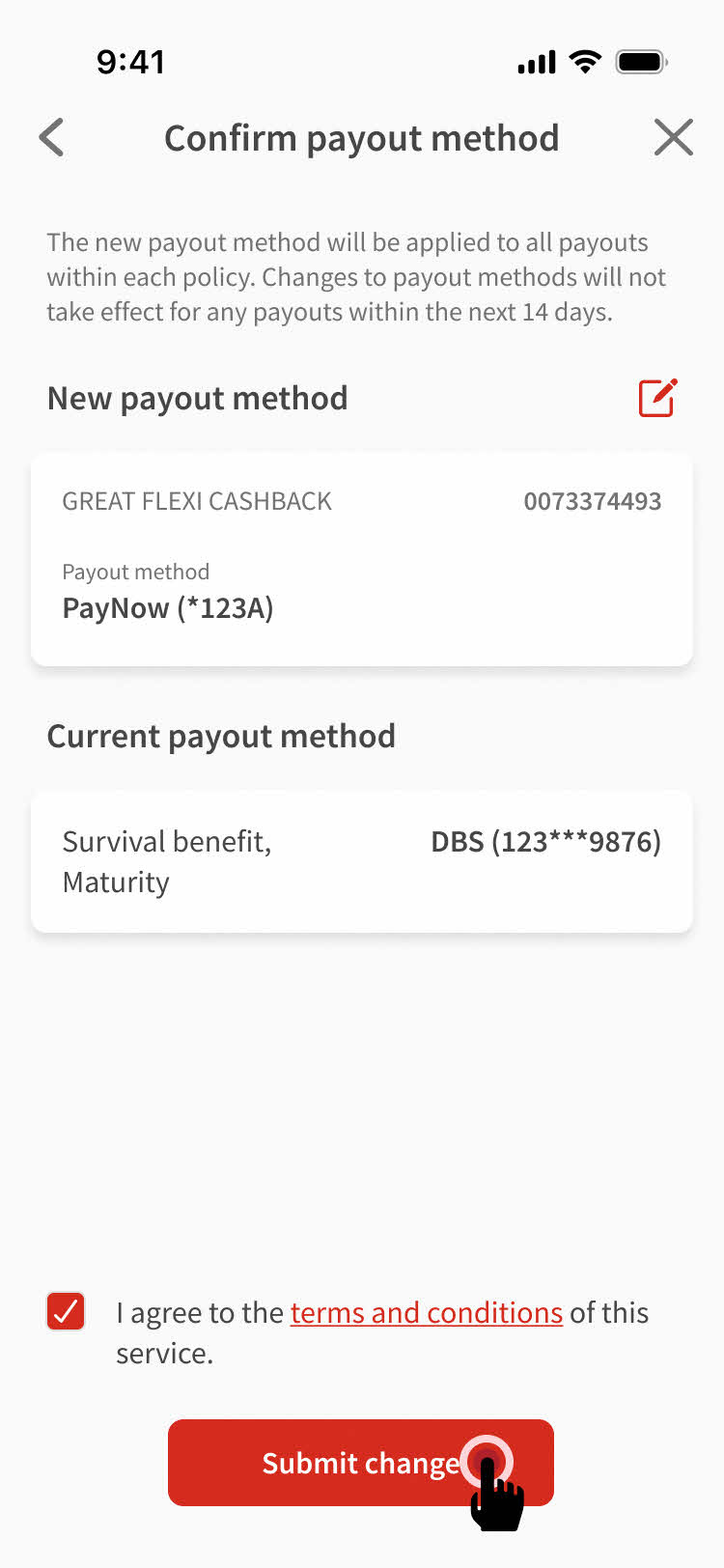 If you want to change the way you receive your policy payout, use the Great Eastern App or submit a form to us through email or post. We encourage you to use PayNow to get your payout credited quickly.