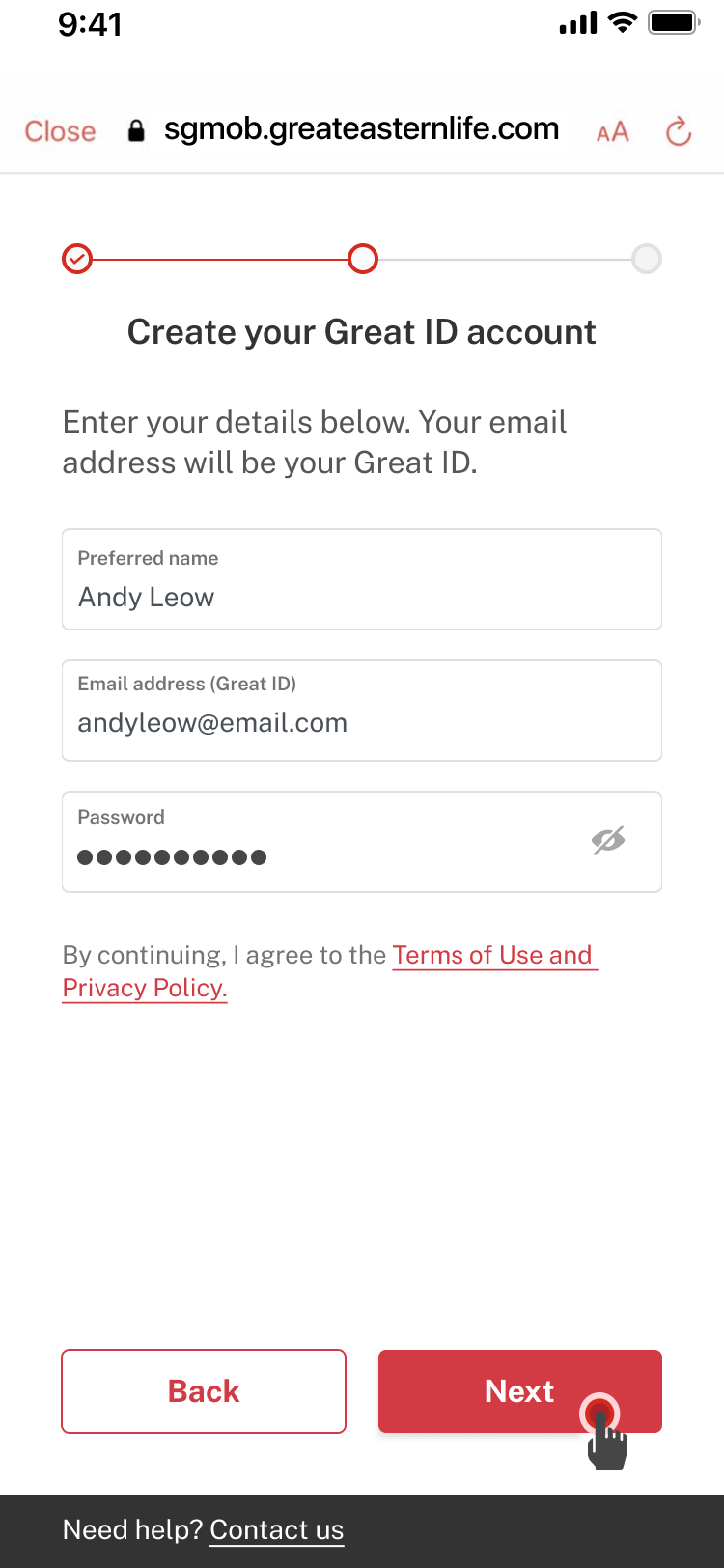 Great ID is a unique sign-in identity that you can use to securely sign in to Great Eastern's digital services such as the Great Eastern App, eConnect, and Great Eastern Rewards.
