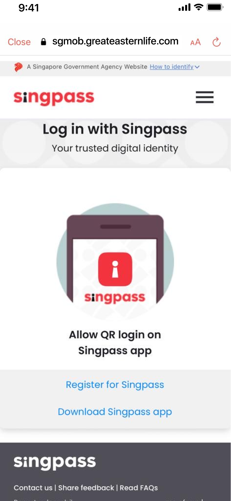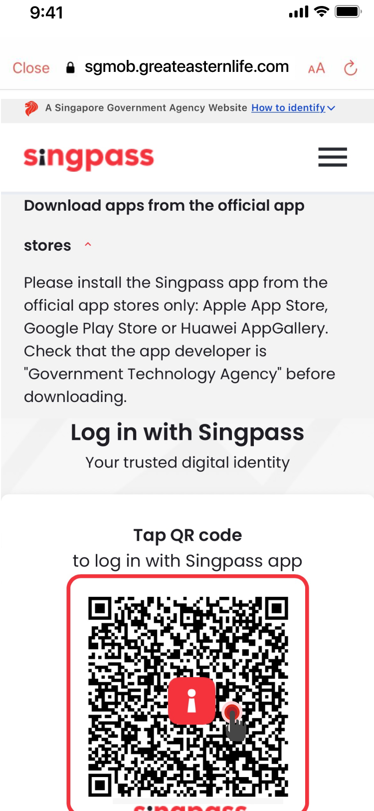 You will be directed to Singpass and be presented with a QR code. Tap the QR code to begin the authentication process.