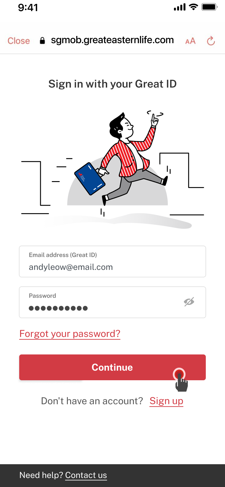 Key in your email address (which is also your Great ID) and password. Tap Continue.