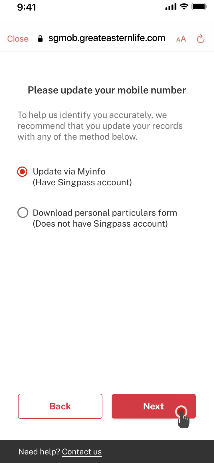 Update mobile number with Singpass