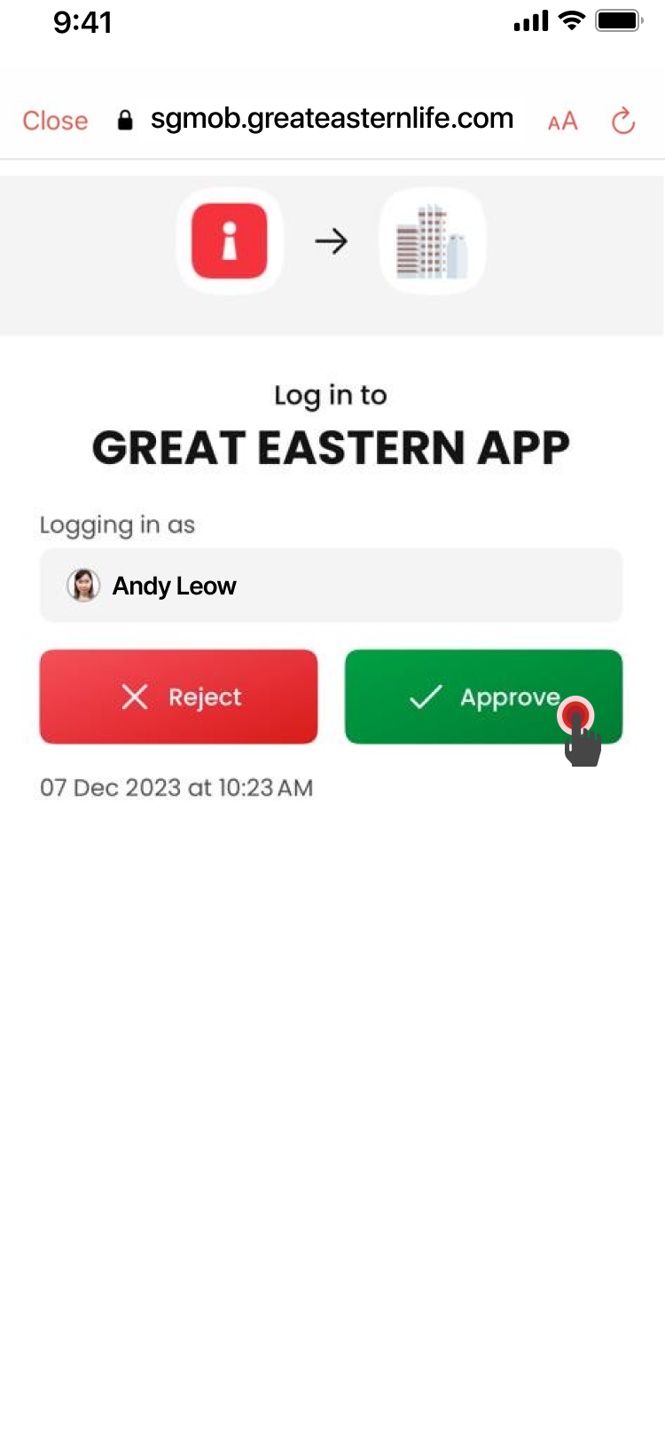 Tap Approve to log into the Great Eastern App.