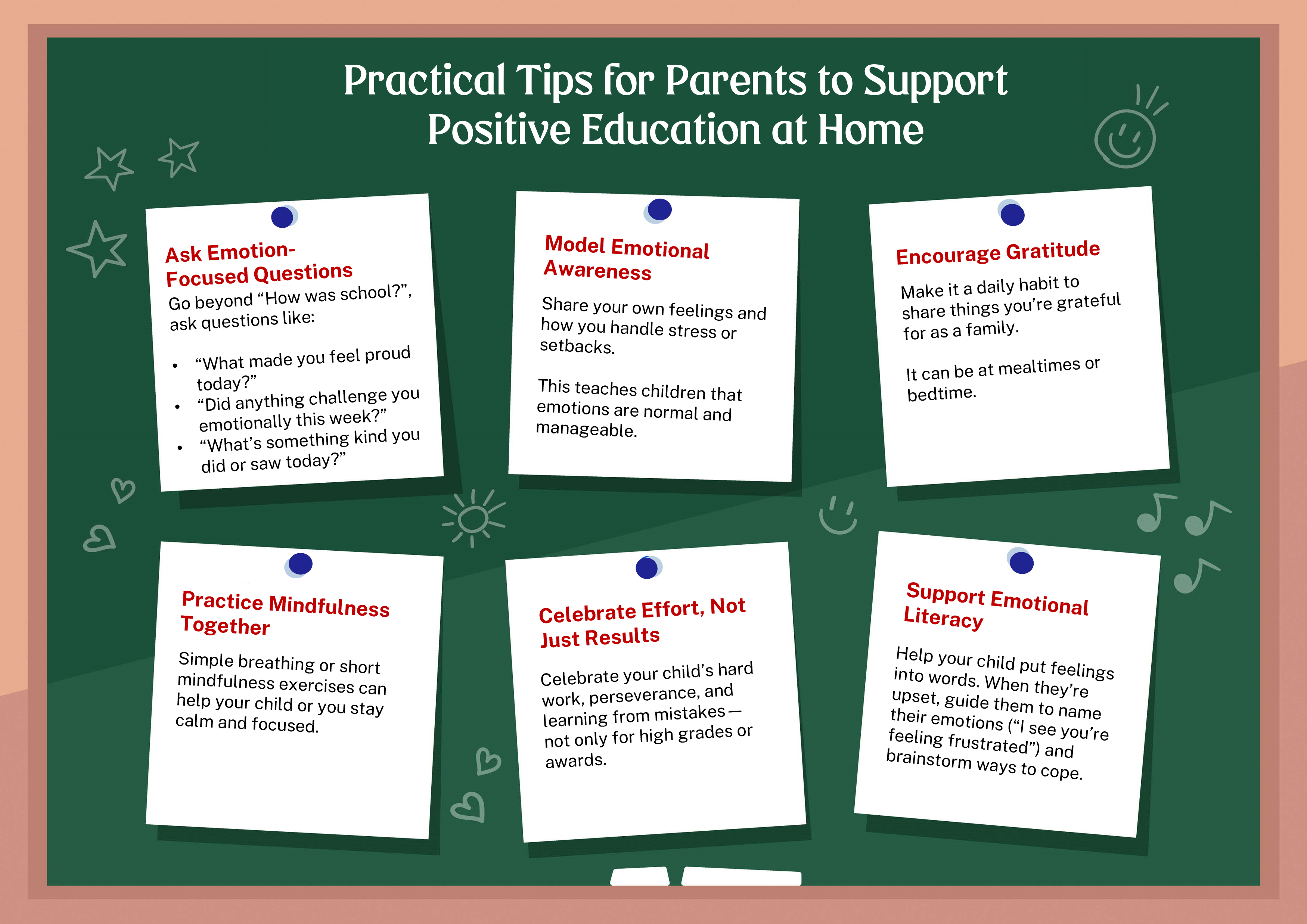 Even small changes at home can make a difference, starting from conversations at the dinner table. Instead of the usual “How was school?”, try asking: “What made you feel proud today?” or “Did anything challenge you emotionally this week?”