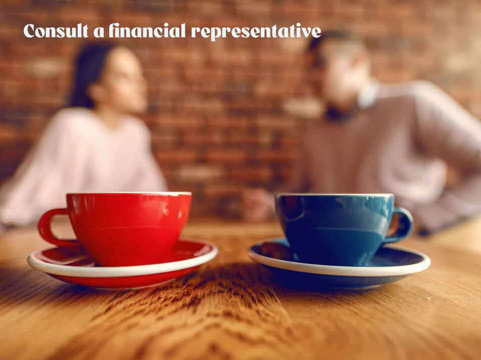 A certified financial representative will be able to help you see how you may be adequately covered in unforeseen situations, such as death and total permanent disability.