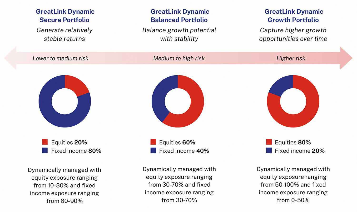 Based on consumer risk appetite, investors have the flexibility to switch between 3 dynamic portfolios whenever their needs change.