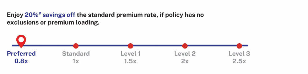 If you stayed healthy and did not make any claim during the Assessment Period1, you will remain at the Preferred Premium Level and continue with 20%# savings off your renewal premium.
