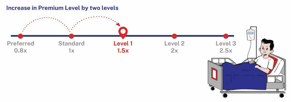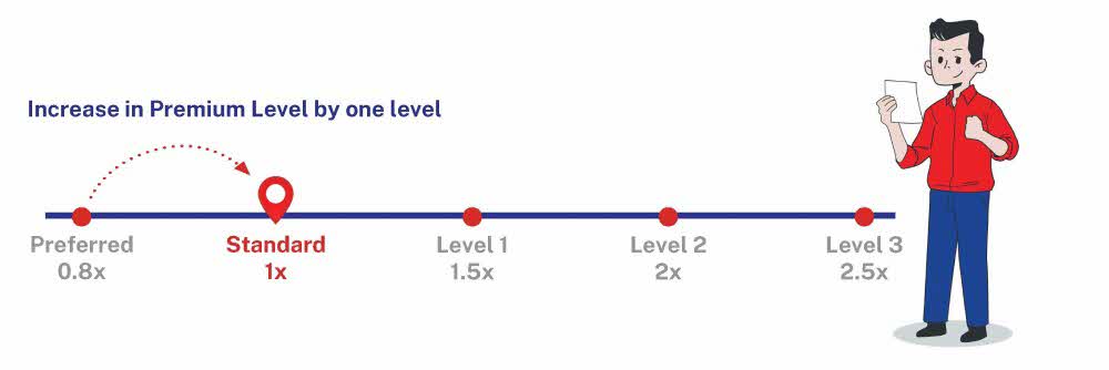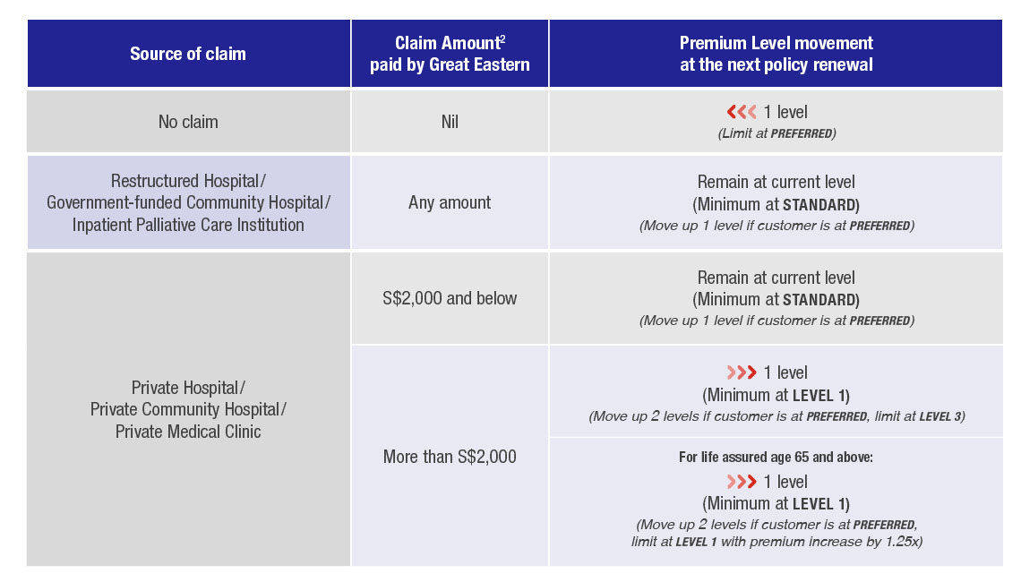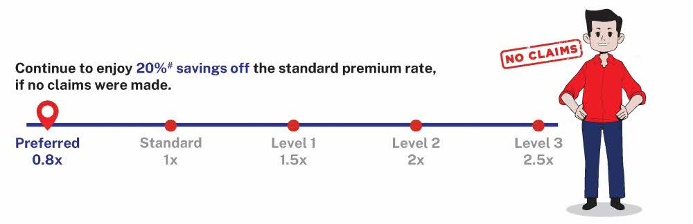- For a claim amount above S$1,000 – you will lose the 20%# preferred discount and your premium level will increase to Premium Level 1 on your next policy renewal.
