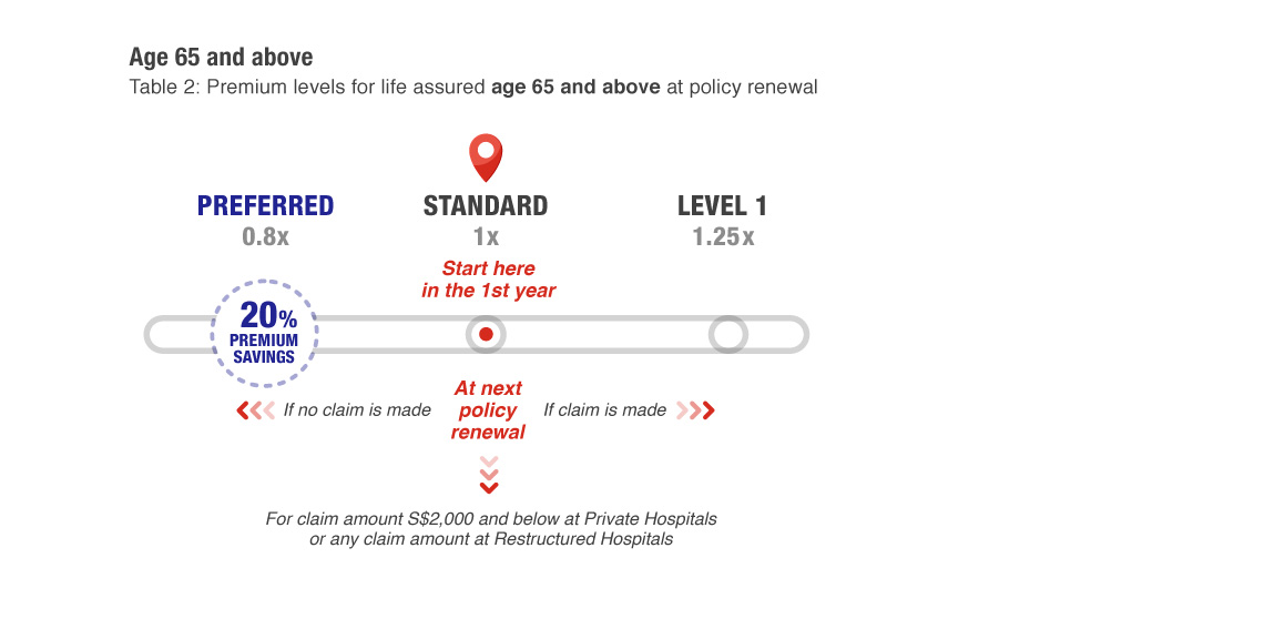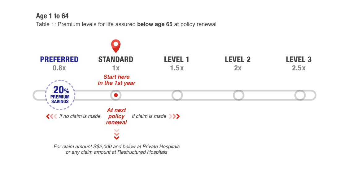 - For a claim amount of above S$1,000, you will lose the 20%# preferred discount and your premium level will increase by 1 Premium Level on your next policy renewal.