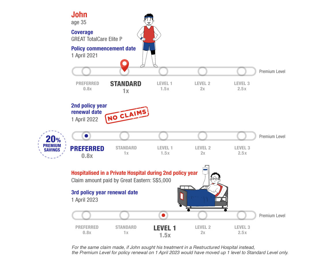 - If you were on the Preferred Premium Level and made a claim for treatment in a Restructured Hospital, (including Government-funded Community Hospital and Inpatient Palliative Care Institution), you will remain at the Preferred Premium Level and continue to enjoy the same 20%# discount off your next policy renewal.