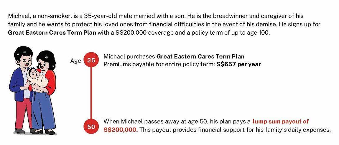 Great Eastern Cares Term plan has a minimum premium of S$120 a year.