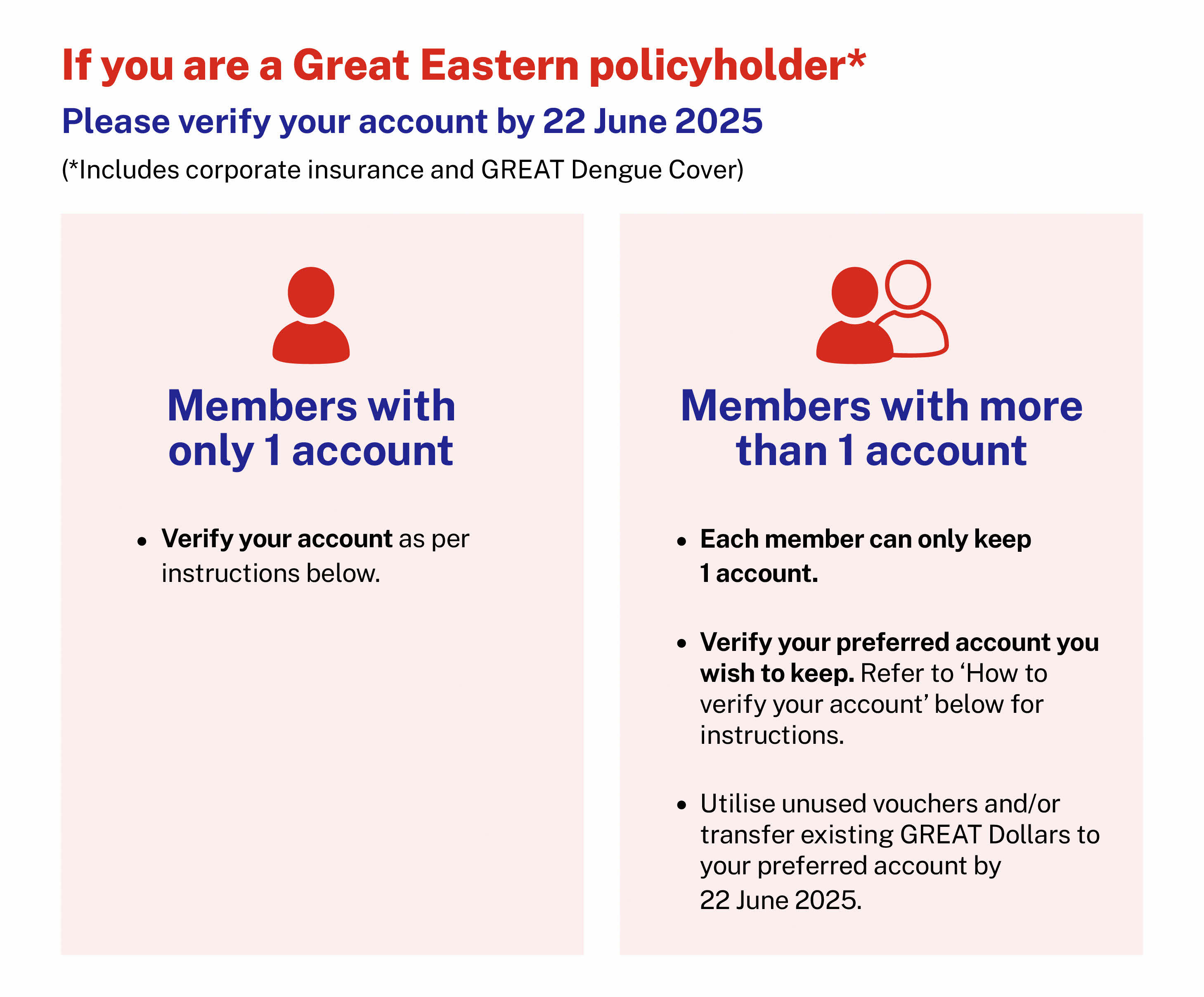 - Any balance of GREAT Dollars will be converted to a third-party rewards points platform and will no longer be available for consolidation or transfer in Great Eastern Rewards App after 22 June 2025.