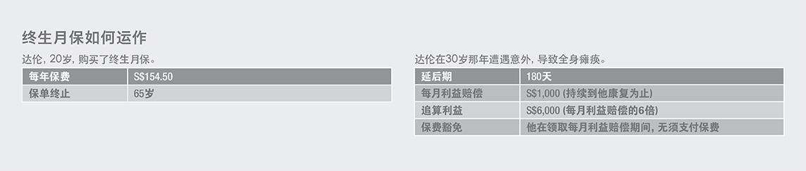 若不幸罹患残疾,可获得一笔一次性的每月利益赔偿3。数额是受保每月利益的3或6倍。