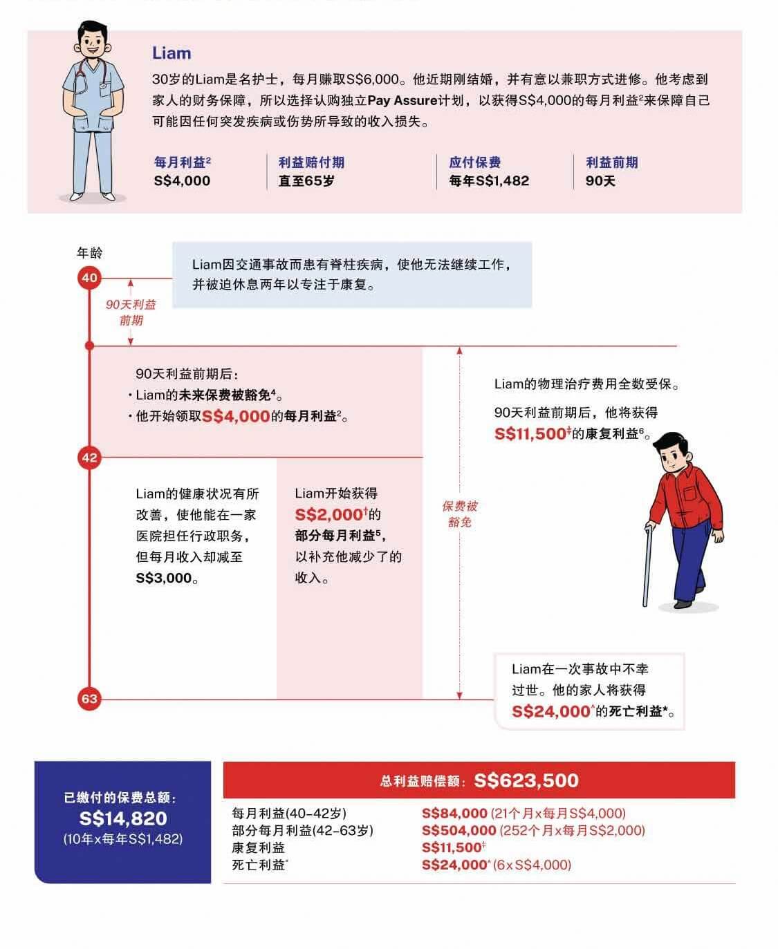 Liam获得S$11,500的全额康复费用报销,因为Pay Assure提供的康复费用报销可高达S$12,000(即指定每月利益之3倍)。