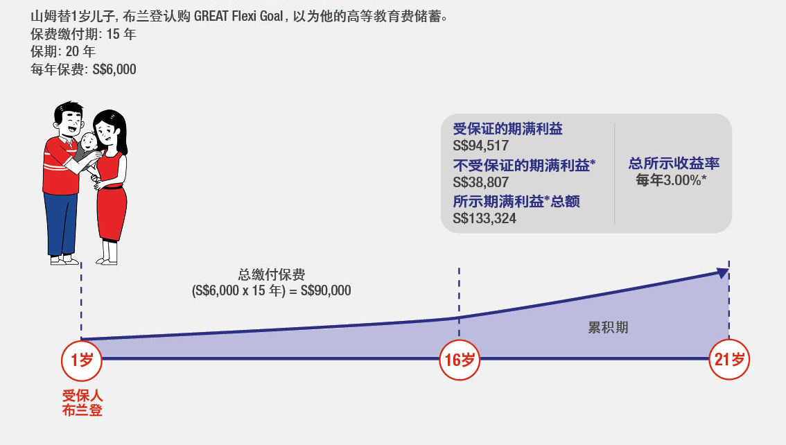 您可期待在保单期满之际,获得高达每年3%*收益率的一次性支付,轻松地实现人生目标。